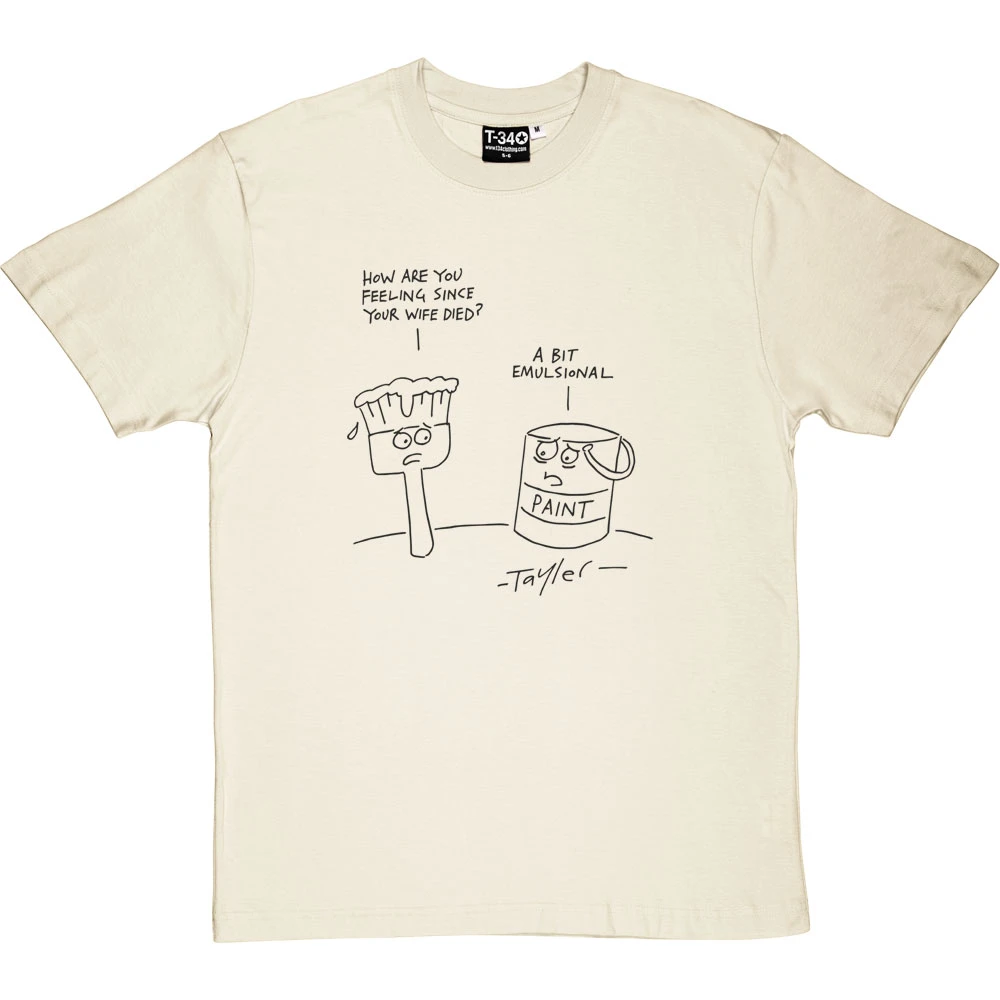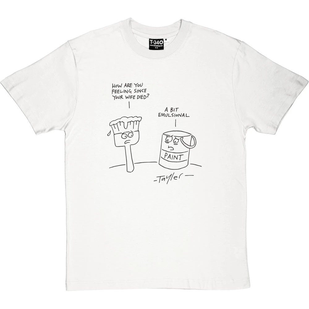 “How are you feeling since your wife died?” asks the paintbrush to the tin. “A bit emulsional”. A cartoon by renowned cartoonist Kent Tayler.