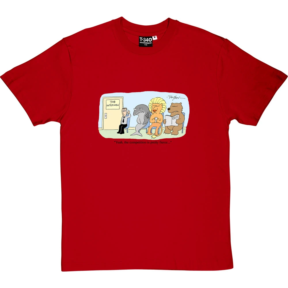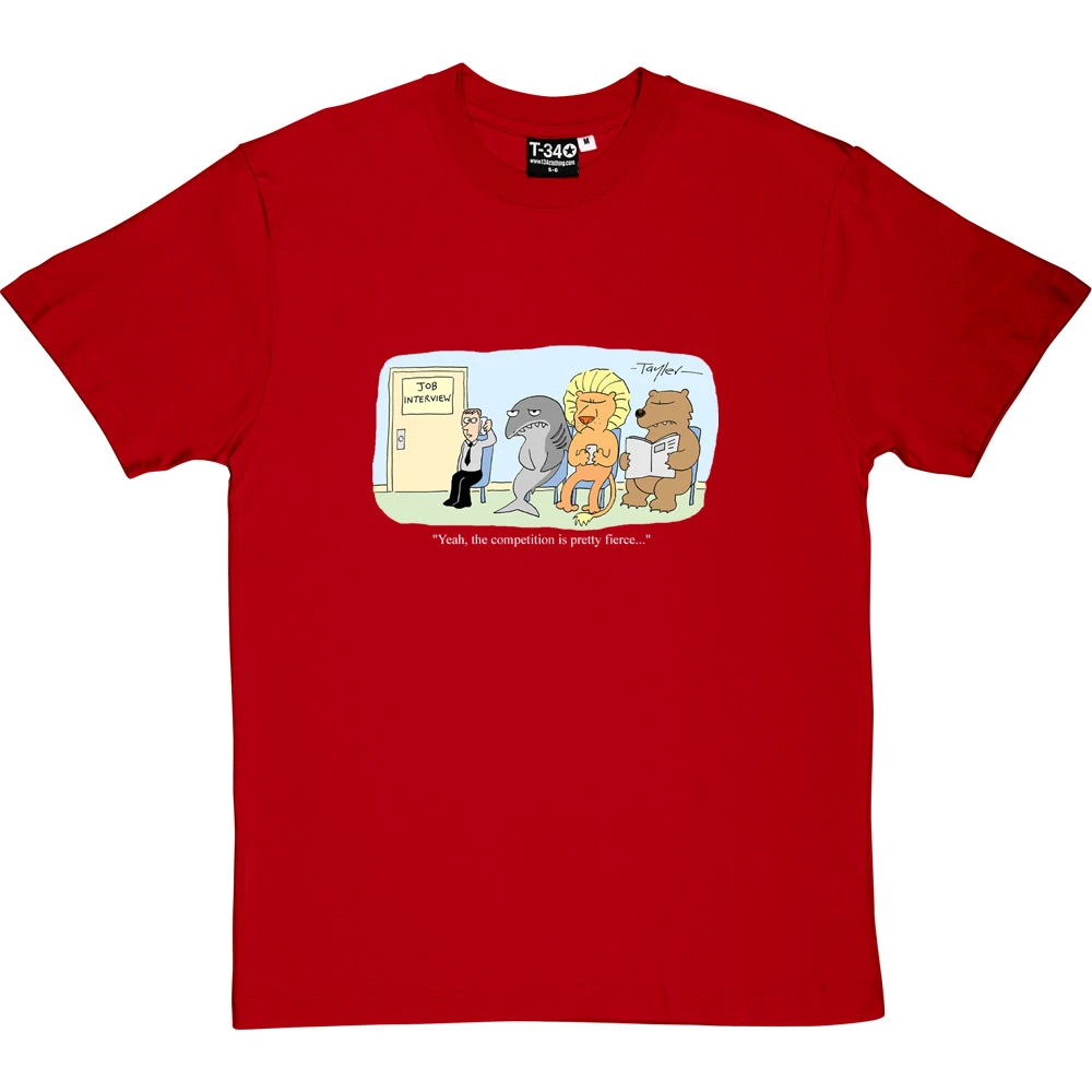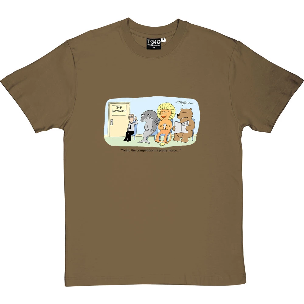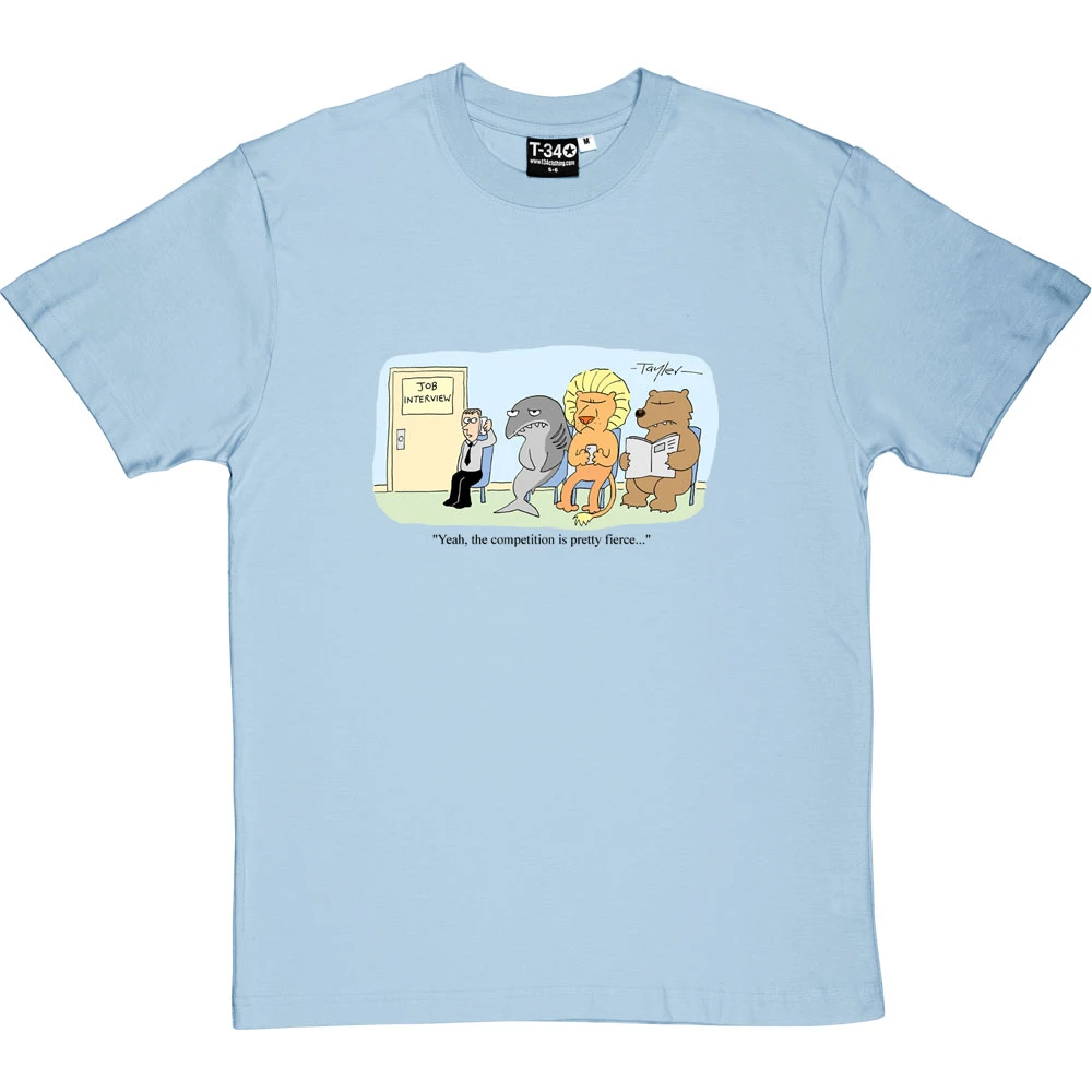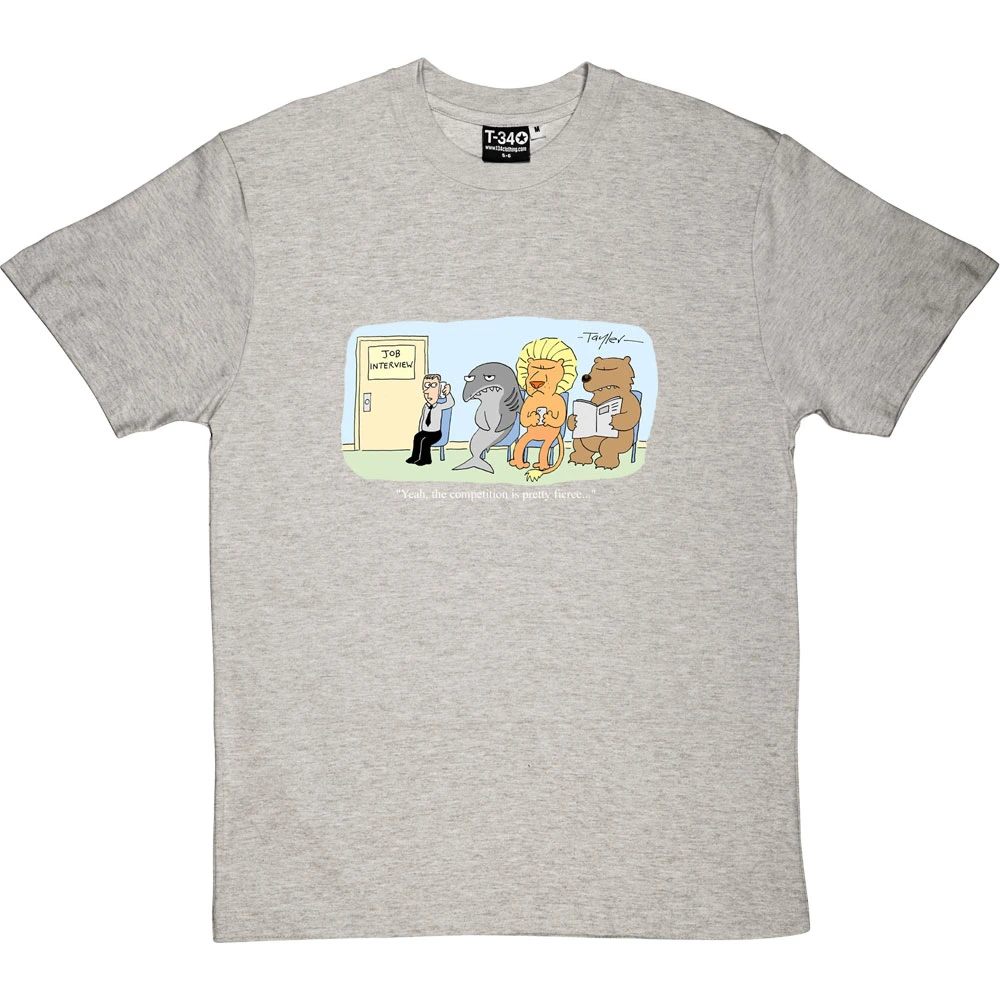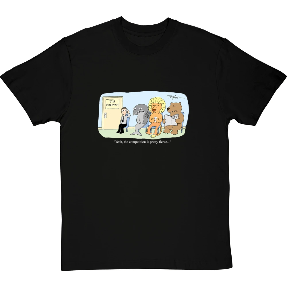 When you are sat outside the job interview on the sofa alongside a lion, a bear, and a shark… yes, the competition is pretty fierce. A cartoon by renowned cartoonist Kent Tayler.