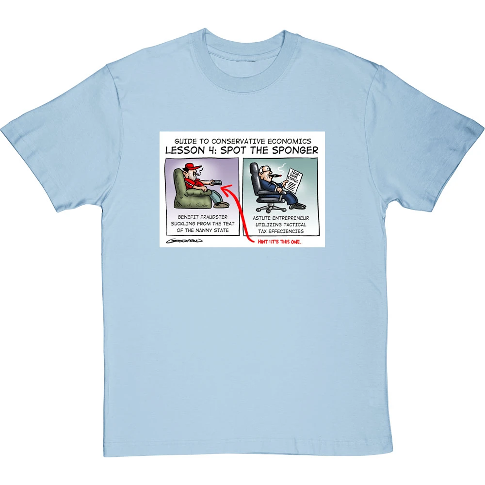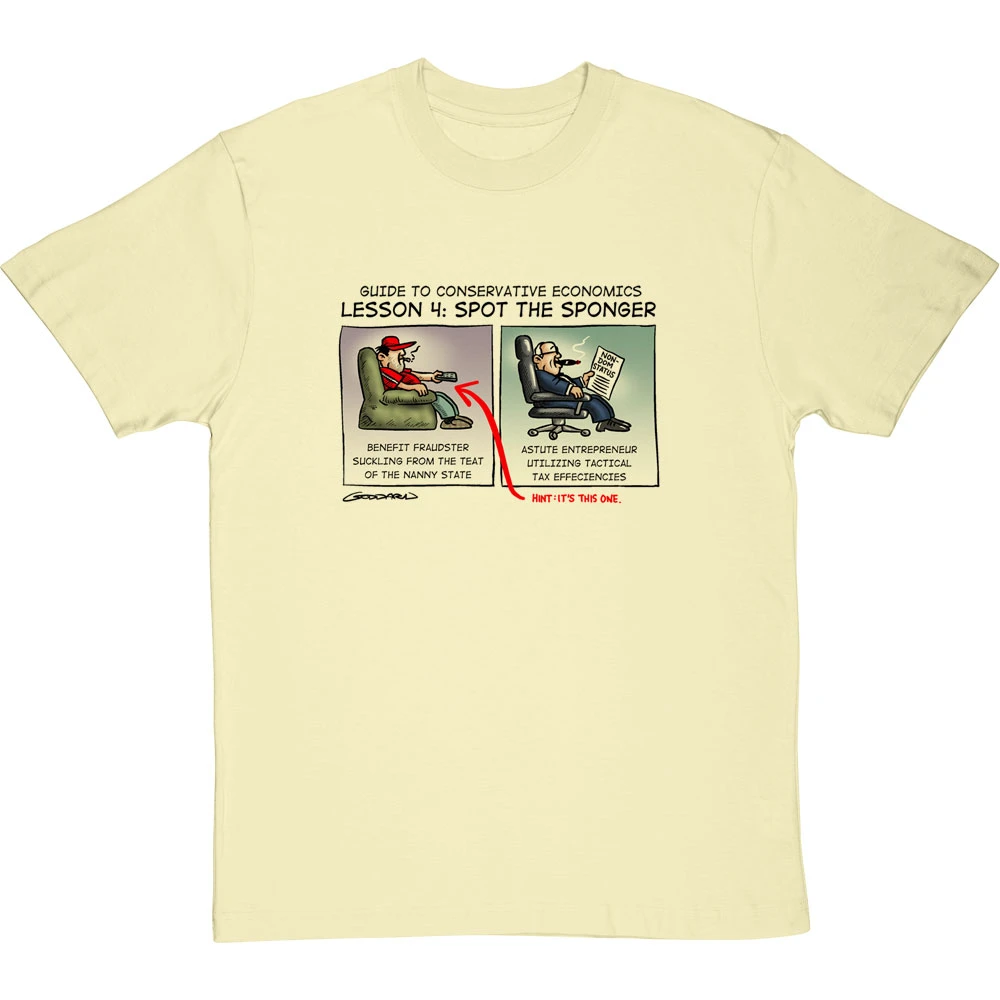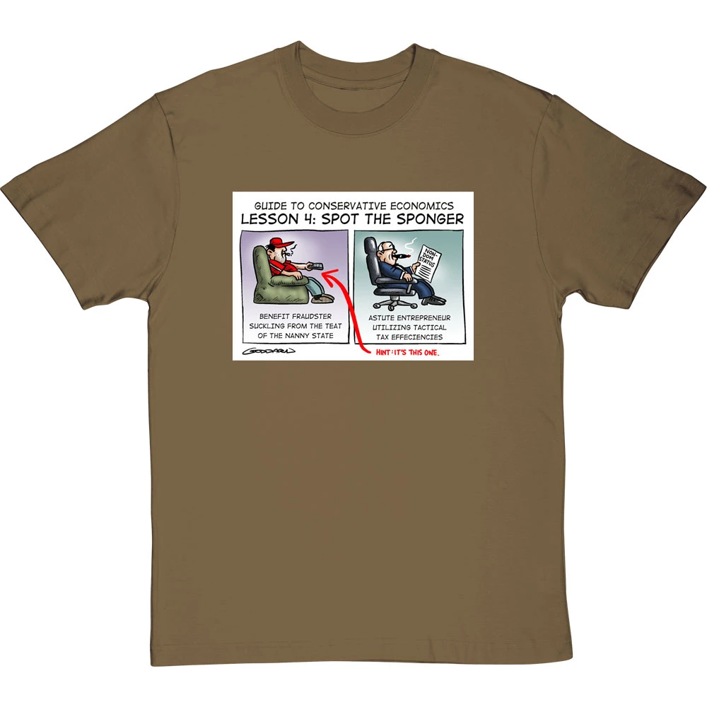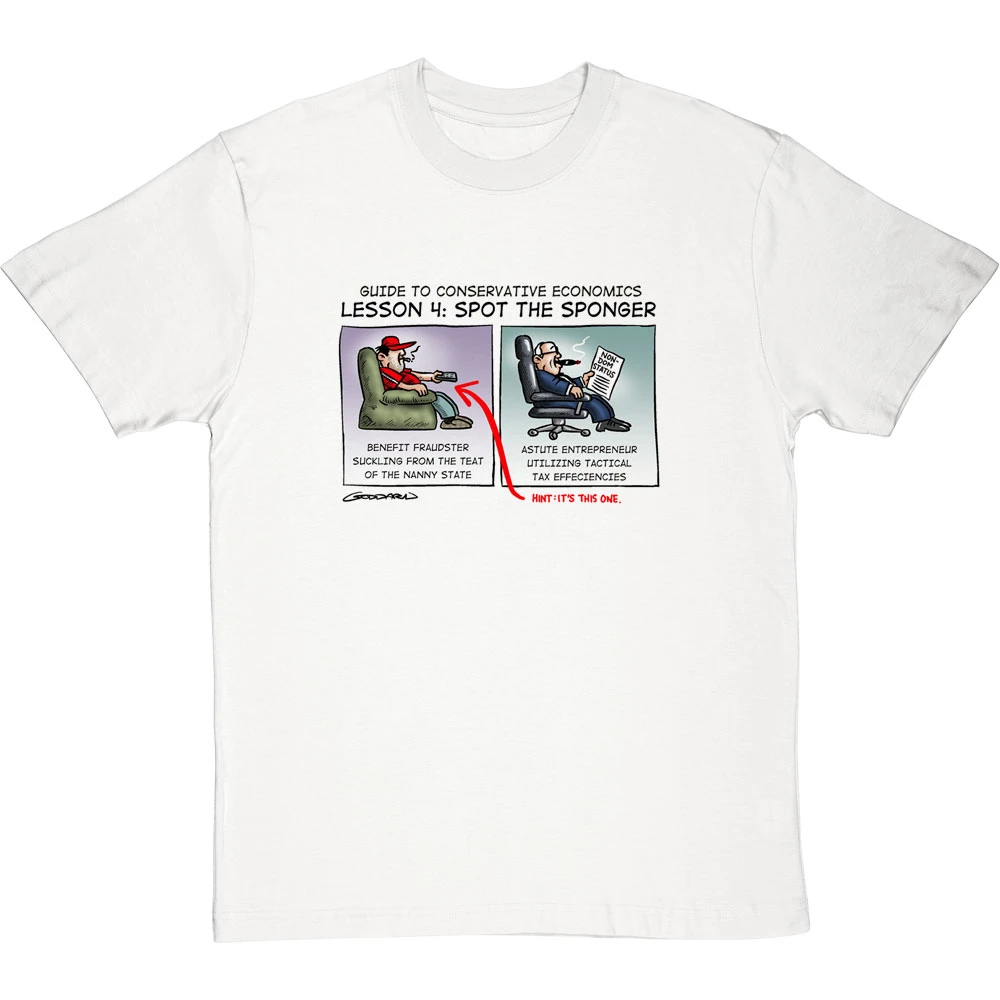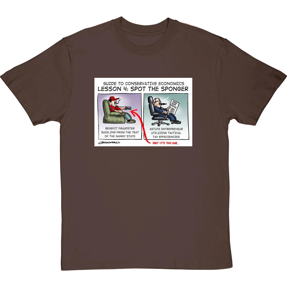 Be the first to review “Guide To Conservative Economics: Spot The Sponger T-Shirt” Cancel reply
