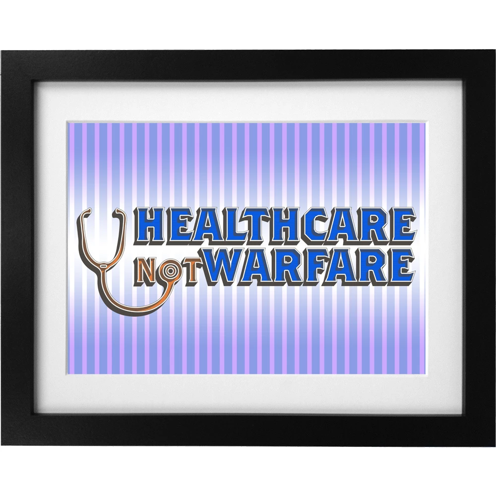 Fund wellness, not wars. Healthcare not Warfare. Stethoscopes over sniper scopes