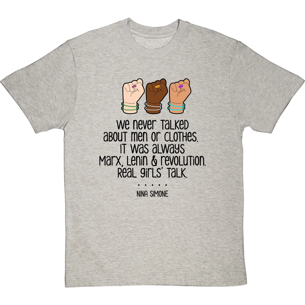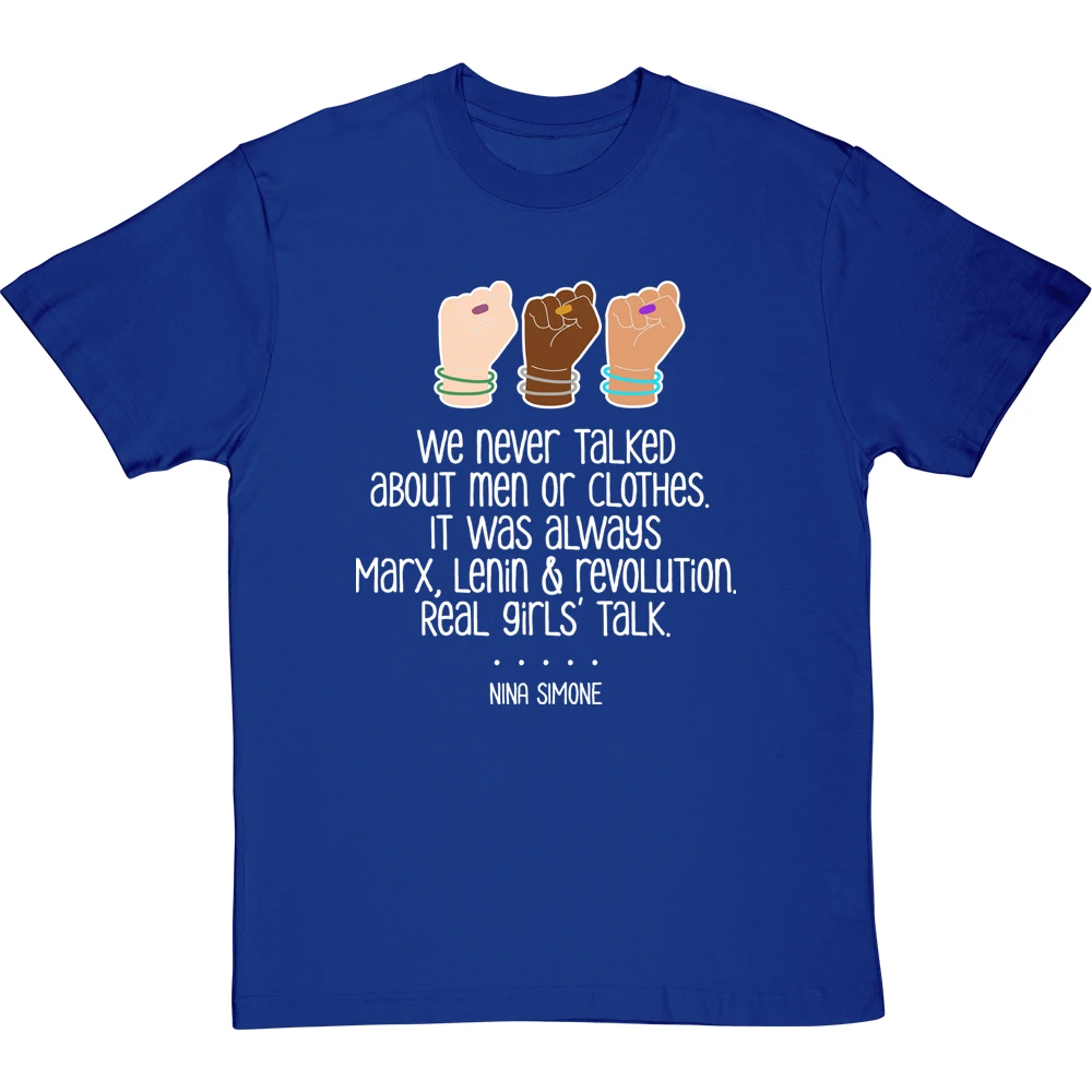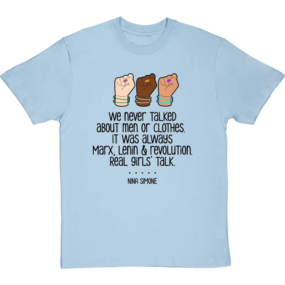 Nina Simone, musician, activist, and incredible human, on girls’ talk: We never talked about men or clothes. It was always Marx, Lenin and revolution. Real girls’ talk.
